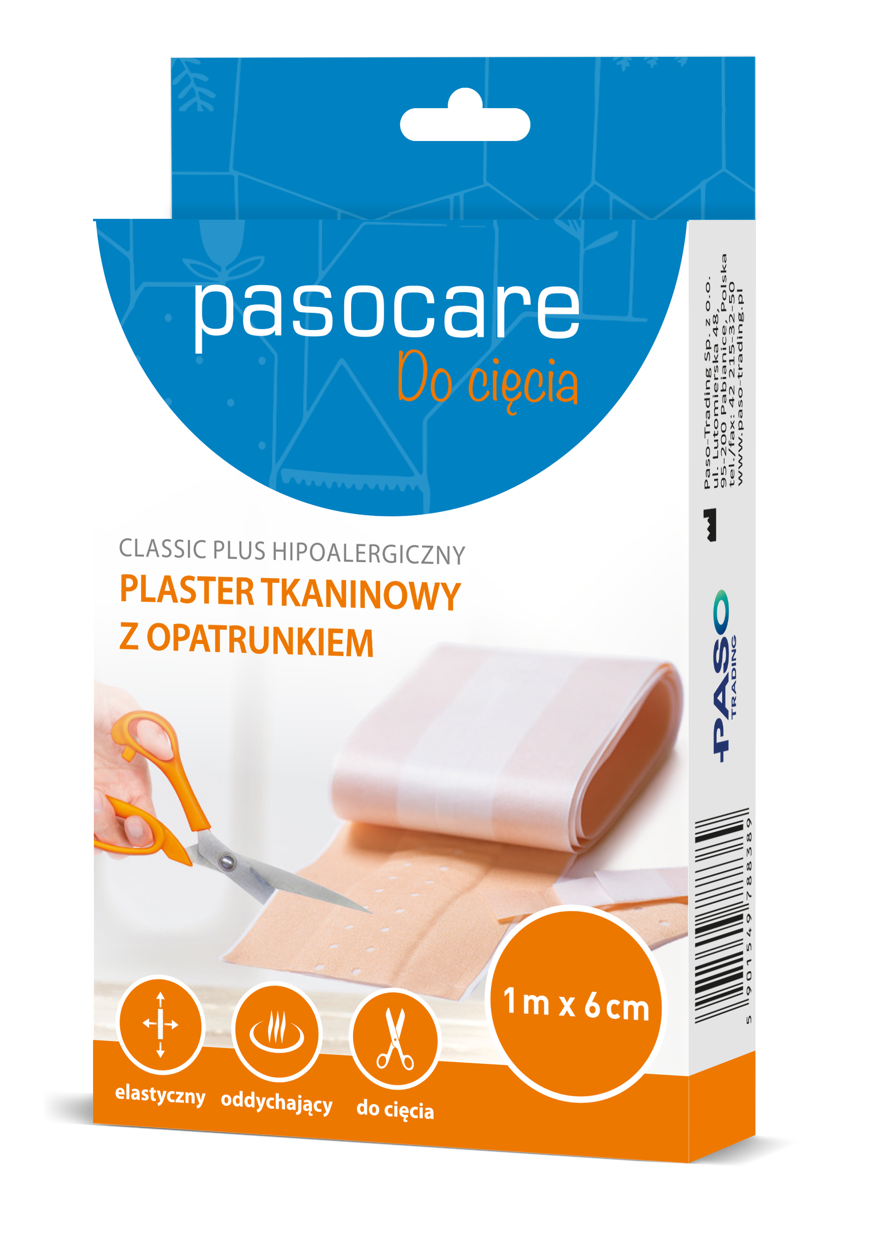 Pasocare Classic Plus – Hipoalergiczny Plaster Tkaninowy z Opatrunkiem 1m x 6cm