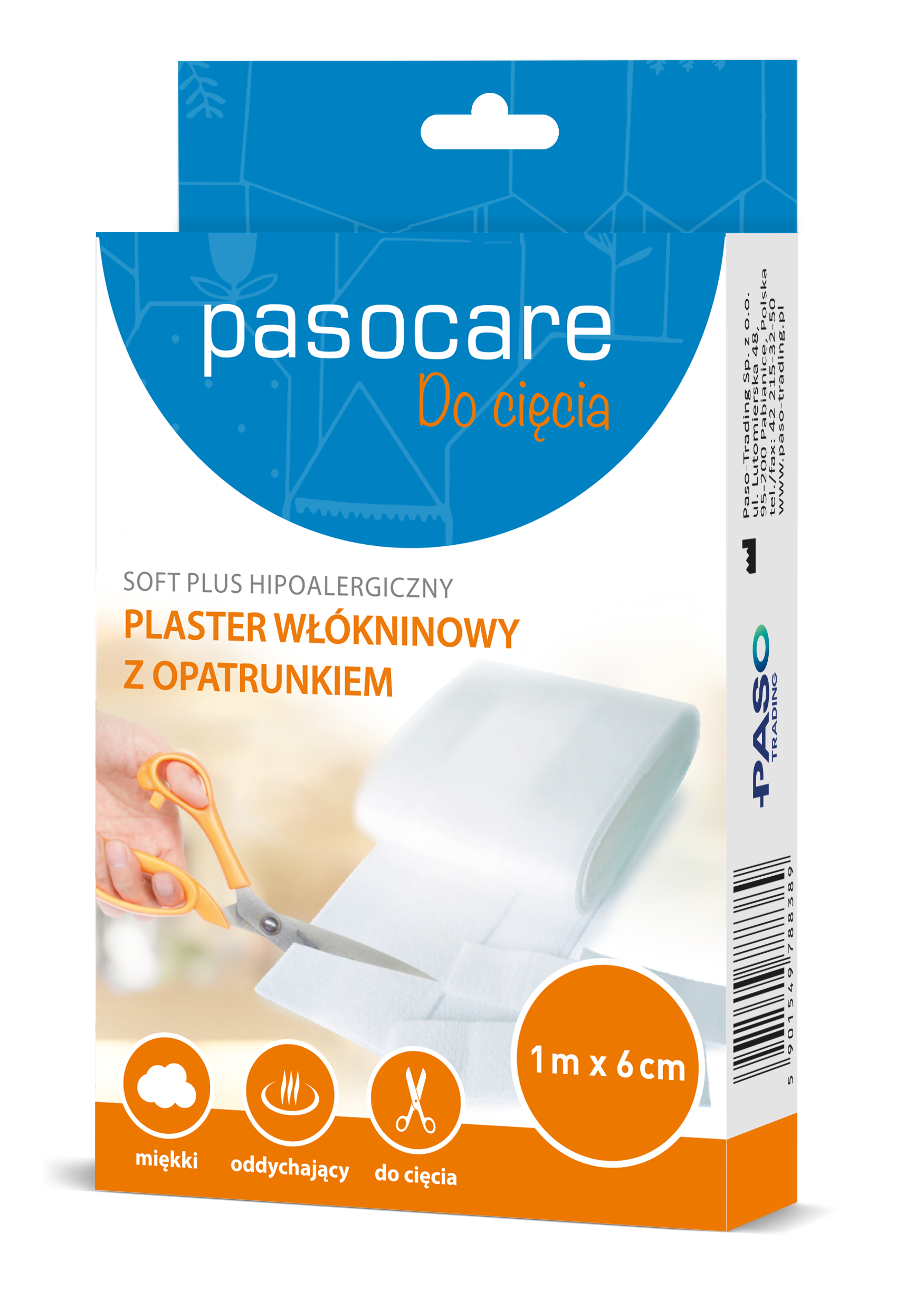 Pasocare Soft Plus dostępny jest w formie rolki o długości 1 m i szerokości 6 cm, co umożliwia: